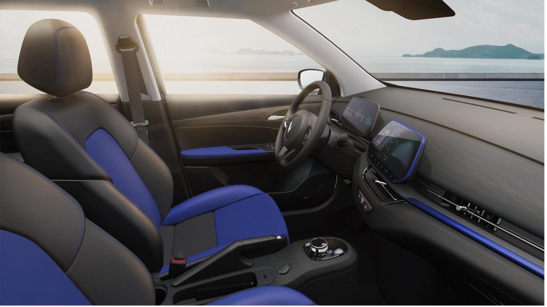 Ngoài ra với cấu trúc của mẫu xe điện, động cơ rất nhỏ gọn và không chiếm diện tích, các khối pin được thiết kế ở sàn xe nên chắc chắn không gian nội thất và cốp xe của VF5 sẽ rộng rãi vượt trội hơn hẳn các xe thuộc phân khúc A.