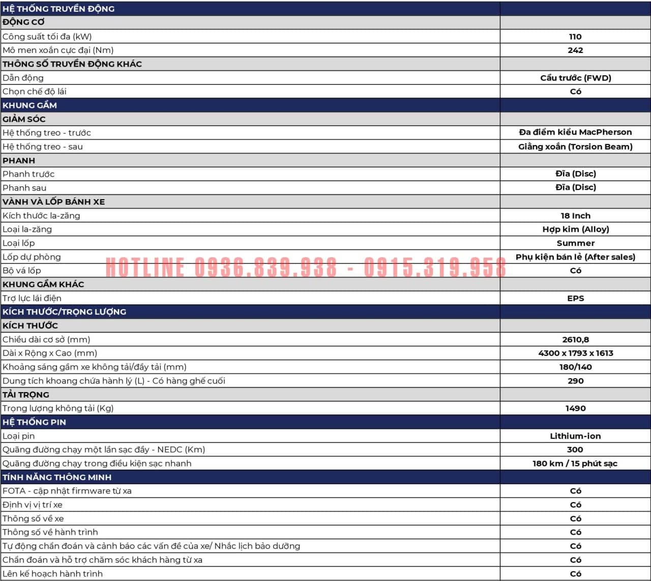 Vinfast VF e34 2022 5 chỗ ngồi được Vinfast định vị là phân khúc xe SUV cỡ nhỏ tiện lợi cho đô thị đông người Vinfast VF e34 sở hữu khích thước chiều dài là 4,300mm chiều rộng 1,793mm và chiều cao là 2,610mm và chiều dài cơ sở là 2,610mm. Không phải lo lắng khi lái xe Vinfast VFe 34 bước qua các vật cản lên vỉa hè dễ dàng với khoảng sáng gầm xe là 180mm trọng lượng của xe VF e34 1,490kg. An toàn vẫn là tiêu chí hàng đầu Vinfast đã trang bị cho Vinfast VF e34 6 túi khí. Điều đương nhiên là loại pin: Lithium-ion Quãng đường chạy 1 lần sạc đầy : 300km (NEDC). Di chuyển 180km chỉ sau 15 phút sạc với cổng sạc nhanh của Vinfast.