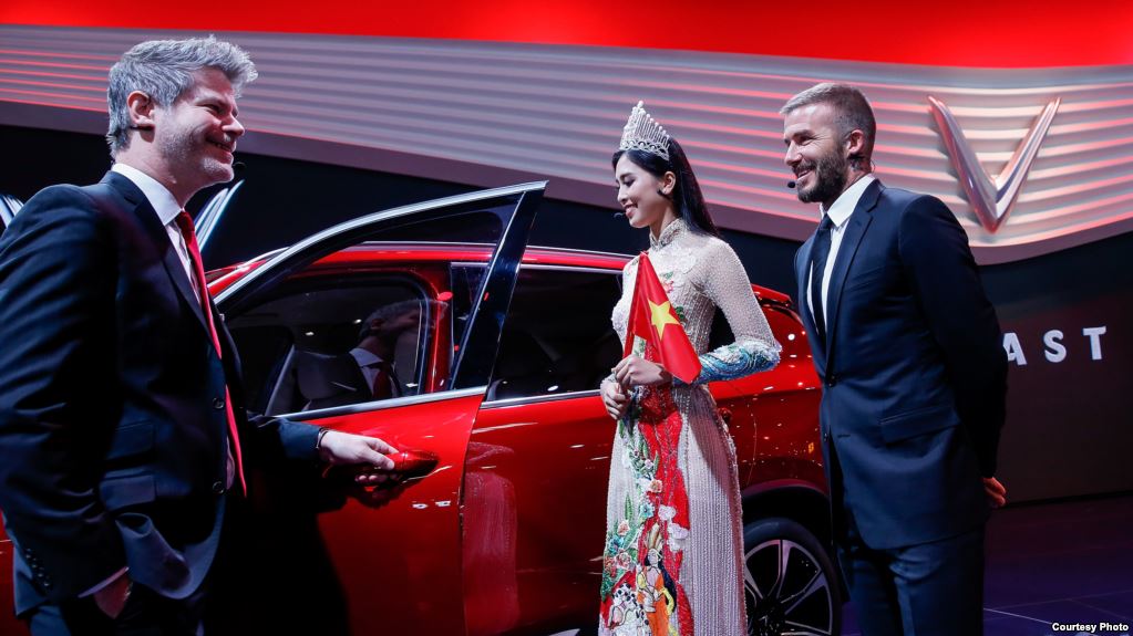 Tờ DailyMail của Anh đã đăng tải loạt ảnh ngôi sao David Beckham tháp tùng bà xã cùng một số bạn bè đến du lịch tại Pháp. Chính điều này đã làm dấy lên sự tự hào trong tâm trí người hâm mộ Việt Nam rằng VinGroup có thể mời ngôi sao nổi tiếng toàn cầu David Beckham tham gia quảng bá cho mình tại sự kiện Paris Motor Show. David Beckham là một trong những ngôi sao đắt đỏ nhất thế giới, anh từng là đại diện cho những nhãn hàng hàng đầu như Rolex, Adidas, Armani, Gillette, Pepsi. Đương nhiên, số tiền mà các hãng phải bỏ ra để có được David Beckham không hề rẻ. Việc VINFAST mời được David Beckham thể hiện tham vọng và độ “chịu chơi” của hãng. Việc David Beckham sánh vai cùng Hoa hậu Tiểu Vy, Trần Quang Đại và các sao Việt chắc chắn là tâm điểm của lễ ra mắt.Tất nhiên lượng theo dõi buổi ra mắt của VinFast tại Việt Nam và quốc tế ở con số rất ấn tượng chứng tỏ sức hút đến từ các Influencer này là không hề nhỏ.
